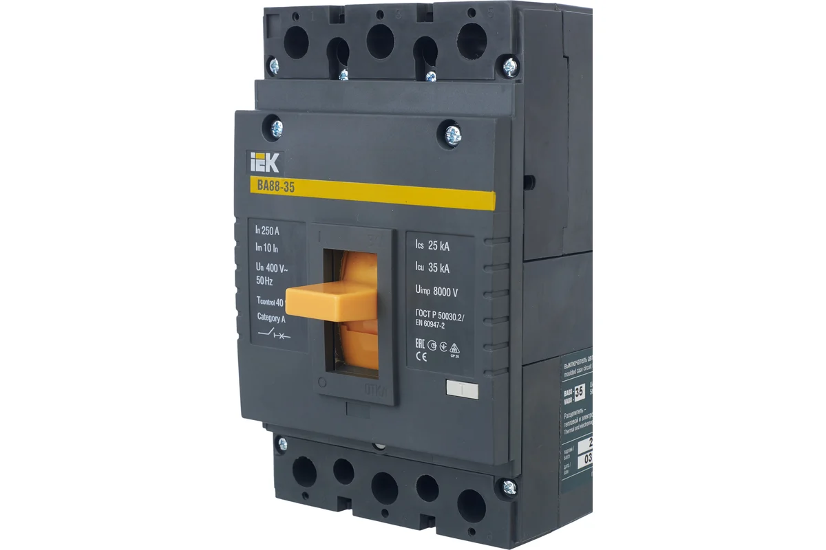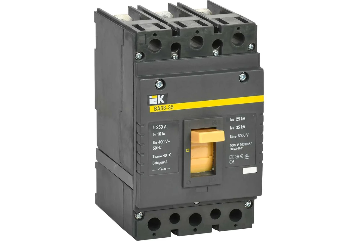 Автоматические выключатели ВА88 предназначены для проведения тока в нормальном режиме и отключения тока при коротких замыканиях, перегрузке, недопустимых снижениях напряжения, а также для оперативных включений и отключений участков электрических цепей и рассчитаны для эксплуатации в электроустановках с номинальным рабочим напряжением до 400 В и на номинальные токи от 12,5 до 1600 А.